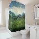 Cortina De Ducha Casa de madera, paisaje natural de montaña.