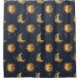 An elegant celestial pattern shower curtain featuring golden suns, crescent moons, and scattered stars set against a deep midnight blue background. Inspired by vintage astrology and mystical night skies, this seamless design blends luxury gold textures with cosmic symbolism.
