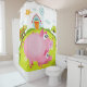 Una bonita cortina de ducha de temática agrícola incluye un granero de heno, manzanos, sol, nubes y dos divertidos cerdos rosas.