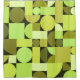 Este patrón artístico abstracto de estilo retro de los años 50 tiene cuadrados, círculos y medio círculos en tonos verdes de chartreuse.