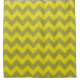Una colorida cortina de ducha con una estampilla y un diseño de chevron verde que forman un patrón zigzag para darle un toque contemporáneo al cuarto de baño.