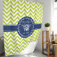 Alegrarás tu baño con esta cortina de ducha personalizada con un vibrante patrón de chevron verde lima y azul marino acentuado con una encantadora abeja de miel. El diseño juguetón es perfecto para agregar un toque de diversión a tu rutina diaria. Personalízala con tu nombre y una fecha especial para un acento único y elegante.