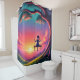 Esta cortina de ducha tiene un chica sobre un columpio retratado en ella.