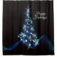 Christmas Party Blue Tree Shiny Black Elegant Shower Curtain. Unique, beautiful, stylish design. Easy to be personalized. Font style, size and colors can be changed. Matching items are available.