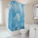 Cielo azul con cortina de ducha de nubes. este diseño muestra un cielo azul soleado con algunas nubes.