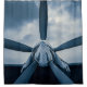 Hélice de un avión de pistón contra el fondo de un cielo oscuro y turbio. ¡Un apoyo claro! ¡Vamos! ¡Aviar, navegar, comunicar! Cortina de ducha para el baño.