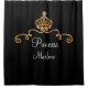 Divertida pero elegante cortina de ducha con corona real de color dorado y espacio monograma que dice princesa y tiene espacio para dejar nombres, se puede reemplazar con cualquier nombre de chicas que haga su princesa o reina de su baño.