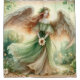 This dreamy scene captures a serene angel bathed in soft light, surrounded by fluttering clovers and gentle blossoms that create a peaceful, enchanted atmosphere. Flowing watercolor greens blend into warm golden tones, giving the artwork a glowing cottagecore charm with a touch of whimsical folklore. Her graceful wings, delicate florals, and quiet pose invite a sense of calm beauty, evoking nature’s gentler moods and a timeless feeling of hope. AI generated artwork.
