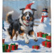 Un elegante Rough Collie corre alegremente a través de la nevada escena del invierno, usando un gorra festivo de Navidades rojos. Este encantador diseño resalta el abrigo fluido de la raza, los ojos inteligentes y la personalidad amable, al tiempo que captura el calor y la alegría de la temporada de vacaciones. Un alentador momento de invierno lleno de alegría festiva.