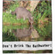 Cortina de ducha cómica con un gato bebiendo. Personaliza el texto - no bebas el mensaje de agua de baño para que te adaptes a tu estilo de decoración.