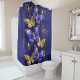 Composición de lujosas mariposas de zafiro y joyas de oro sobre fondo de textura azul.