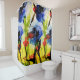 cortina de ducha con flores abstractas de color azul y rojo, preciosa decoracion para tu baño, flores de acuarela