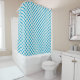 Un patrón simple de manchas de azul cian sobre un fondo blanco. Esta cortina de ducha chic y alegre tiene un borde blanco.