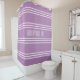 Cortina de ducha con rayas de lila y texto persona
