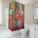 Audaces obras de arte con rayas y flores rojas, verdes y doradas. El diseño combina el chic y el wabisabi japonés y se vería muy bien en una decoración maximalista.