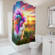 Esta cortina de ducha tiene un conejo muy lindo.