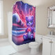 Esta cortina de ducha tiene un oso que sostiene un corazón.