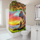 Esta cortina de ducha tiene una criatura de fantasía.