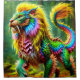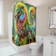Esta cortina de ducha tiene un león artístico retratado en ella.