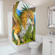 Esta cortina de ducha tiene una criatura encima.