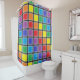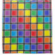 Resumen de arte digital de cuadrados de color arcoiris sobre un fondo negro con lo que parece arañazos blancos dentro de cada cuadrado.