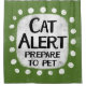 Un diseño tipográfico de animales irreverente y lindo que dice "Alerta de gato, prepárate para el Mascota". Presenta texto en negro y rojo sobre un rectángulo blanco con puntos blancos divertidos y juguetones rodeándolo, todo sobre un fondo gris.