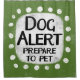 Un diseño tipográfico de animales irreverente y lindo que dice "Alerta de perro, prepárate para el Mascota". Presenta texto en negro y rojo sobre un rectángulo blanco con puntos blancos divertidos y juguetones rodeándolo, todo sobre un fondo gris.