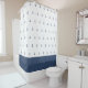 Cortina de ducha de temática náutica con anclas para dar un toque playero a tu baño.