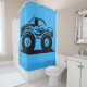 Camión de monstruo negro con llamas en cortina de ducha azul claro