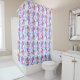 Las cortinas de ducha son perfectas para los niños. Un caballo de mar morado y un pulpo naranja con burbujas están colocados sobre las grandes cortinas de la ducha y se ven muy bien en un cuarto de baño de temática playera.