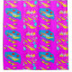La cortina de ducha con motivos únicos es violeta y los colores mezclados animan el espacio más aburrido.