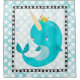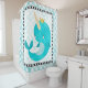 Cortina de ducha Narwhal de color turquesa, blanco y negro con un adorable narval sobre puntos de polka blancos y guarnecido de rayas.