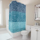 Esta cortina de ducha tiene una línea blanca ilustrada y abstracta, con un diseño de patrones repetitivos que se asemeja a las olas del océano o a las conchas marinas. El color de fondo es de tres bandas de color azul marino, turquesa y acuático. Perfecto para la decoración de playa, costera o oceánica.