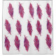 Las plumas de color púrpura y rosa de la cortina de la ducha.