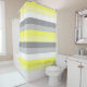 Cortina de ducha de rayas amarillas, blancas y gri