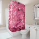 El cuarto de baño ofrece un ambiente sereno y sutilmente glamuroso con una cortina de ducha de color rosa. El rosa profundo crea un ambiente apacible y relajante, mientras que el suave brillo de las secuencias añade un toque de elegancia sobria, lo que da lugar a un retiro refrescante y elegante.