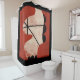 Un simple resumen en naranja negro, blanco y rojo. Una forma curva grande va de arriba a abajo sobre un fondo rojo-naranja. Las líneas rectas se intersectan en la forma grande, mientras que 3 acentos negros adornan el lado derecho y luego se repiten al final.