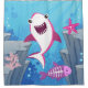 Poniendo tiburón bebé rosa y cortina de ducha de rayos X sonriente