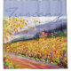 Una pintura original de Anne Ormsby de un viñedo de Toscana adorna esta cortina de ducha.