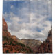 Esta colorida cortina de ducha está decorada con mi fotografía de arte original de las hermosas rocas rojas y el cielo azul de Zion National Park, Utah. Un gran regalo de bodas o inauguración de casa para recién casados o cualquier persona que ame la naturaleza y el aire libre. Todos los derechos reservados © 2015 Alan & Marcia Socolik.