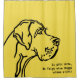 Cortina de ducha personalizada con un llamativo dibujo de un retrato de Gran Danés en amarillo y negro atrevido. Agregue su propio texto personalizado para hacer que esta cortina sea verdaderamente única, perfecta para los amantes de los perros y cualquiera que quiera un acento elegante y divertido en su baño. Mensaje en la parte delantera: “Hay lugares donde ni siquiera un Gran Danés seguiría”. Un regalo extravagante y elegante y un verdadero iniciador de conversaciones para cualquier hogar.