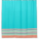 Colorida cortina de ducha de inspiración suroeste realzada con un color turquesa brillante y una banda decorativa con motivos tribales, turquesa, naranja, verde y rosa, a lo largo del fondo. Incluyen accesorios de baño a juego.