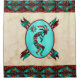 Decore su cuarto de baño con esta cortina de ducha del suroeste de Kokopelli única y única. Cuenta con un Kokopelli que toca la flauta y baila bajo el sol en un fondo turquesa... ¡Rodeado por un borde suroeste en llamas turquesa, negra y Naranja! Esta cortina de ducha Kokopelli tiene toallas y barba de baño a juego. Este es un diseño de arte original del artista Kerry Miller.