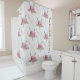 Las animaciones de texto a un día brillante pueden ser personalizadas para adaptarse a tu inspiración para una cortina de ducha de diseño con tus propias palabras. El texto también es extraíble para un aspecto limpio. Diseño acuático floral con borgoña, rosa y verde.