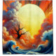 Esta cortina de ducha tiene un diseño artístico del sol.