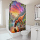 Esta cortina de ducha tiene un dinosaurio.