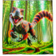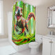 Esta cortina de ducha tiene un dinosaurio retratado.