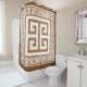 Cortina de ducha con llave griega (Meander) diseño elegante blanco con borde clave para coincidir con el fondo marrón del estilo griego antiguo. Este diseño del famoso y popular patrón griego de la línea continua puede ser editado para cambiar su color si lo desea.