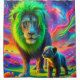 Esta cortina de ducha tiene un diseño de león fresco.