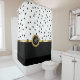 Elegante cortina de ducha de baño en un diseño monograma que puede personalizar con su propio nombre familiar inicial. Diseñado en oro, negro y blanco, con un diseño polkadot moderno y elegante. Añade un toque de clase a cualquier decoración del cuarto de baño.